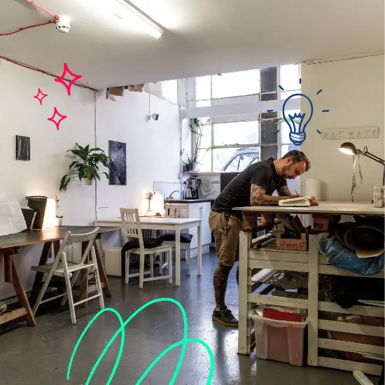 Just enough space for you to get started, or for an established business to work solo. You’ll have the privacy you need to move, think and create but also have other friendly creative makers as your neighbours.